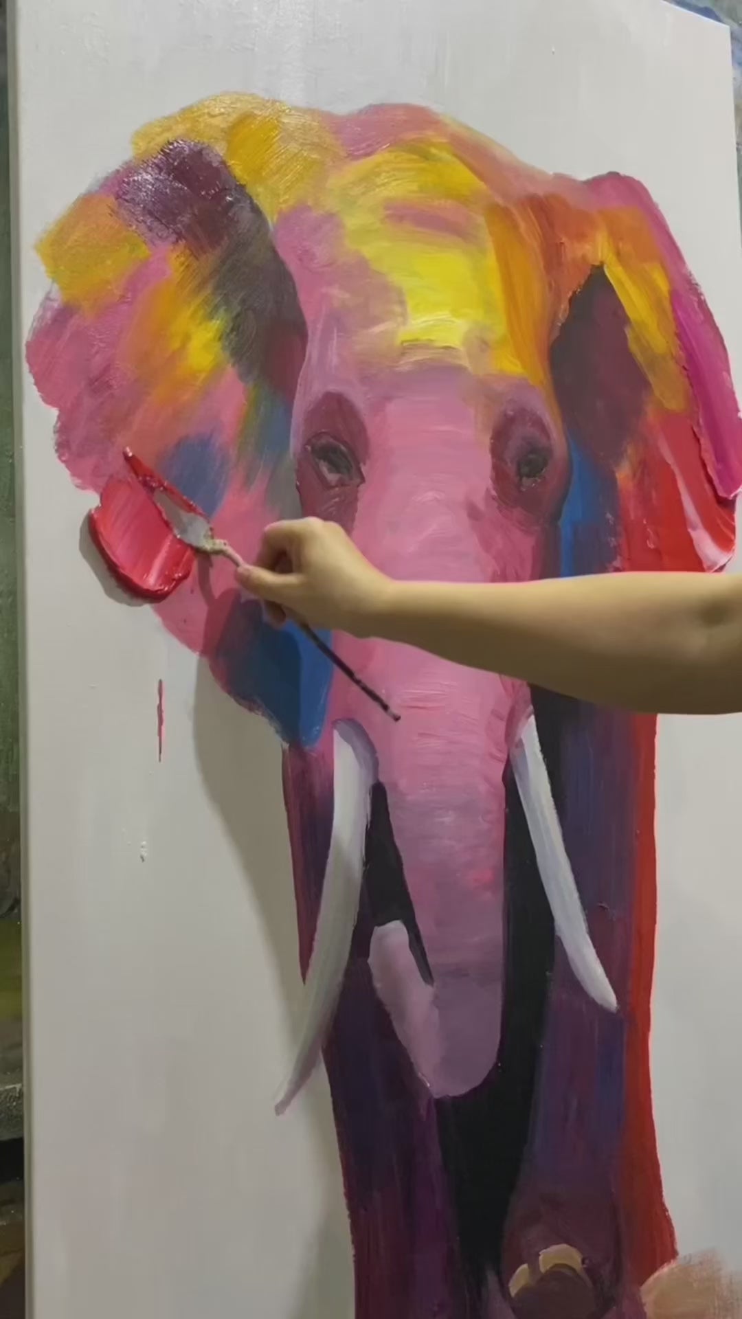 Colorful elephant knife painting oil painting